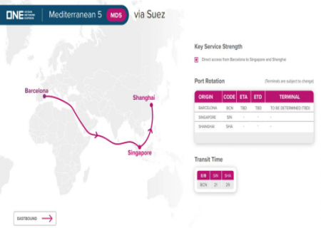 Ocean Network Express (ONE) has announced an addition to its Asia-Mediterranean network with the introduction of a new service. The Singapore-based ocean carrier will launch the Mediterranean 5 (